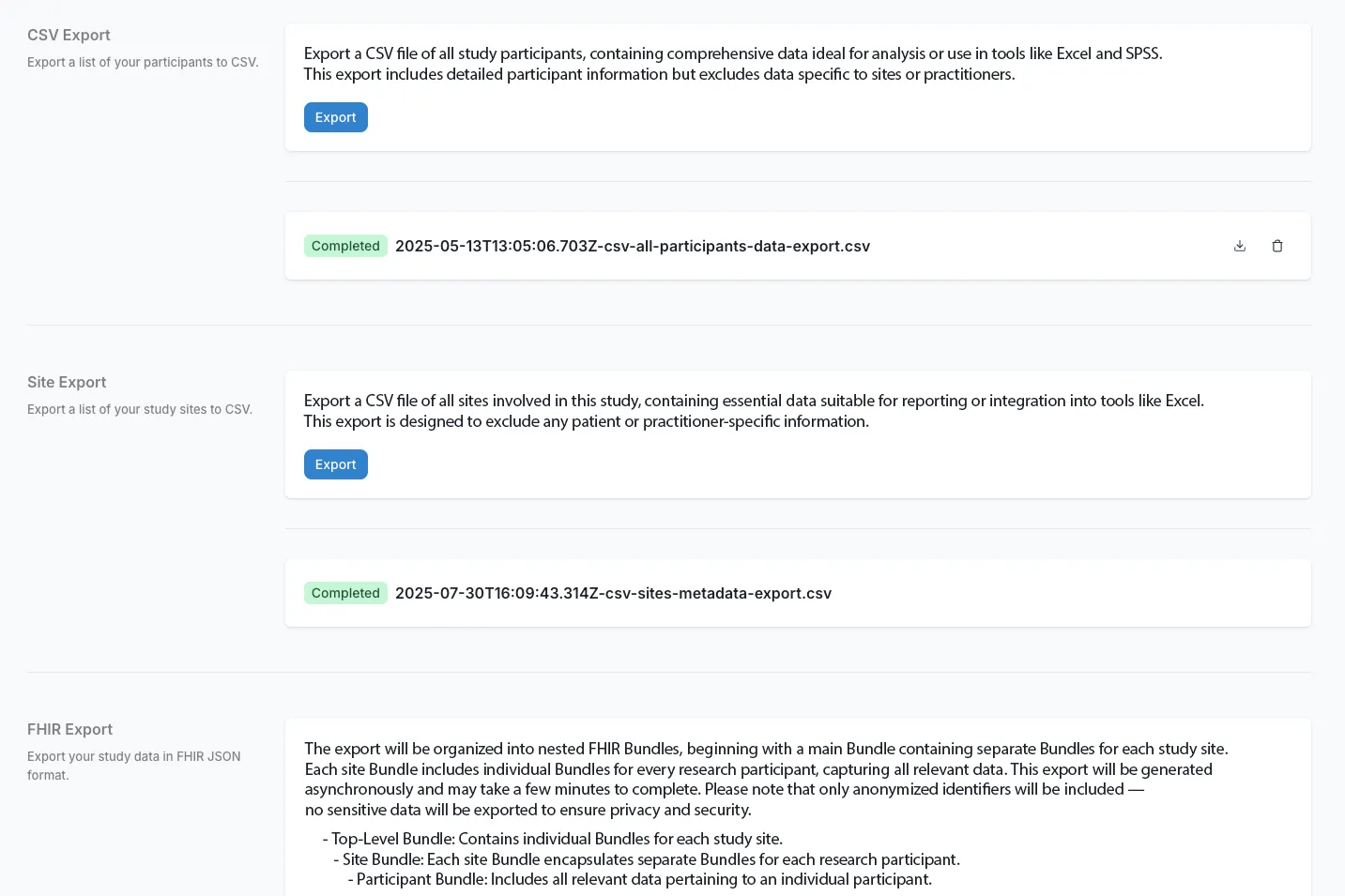 Capture data however your study requires it: direct from EHRs via FHIR, patient-reported outcomes through ePRO, laboratory systems, or manual entry. Reduce data collection burden by 50-85% through automated data flows. Use standard clinical terminologies (SNOMED, LOINC, ICD-10) for immediate interoperability.